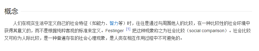 引用百度百科 关于社会比较的意义上,绝不是停留在“比”的阶段,它更是一种自我发现,一种对待生活的新视角。 心理学家把社会比较分成两个方向: