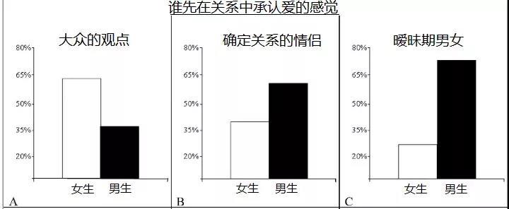 而麻省理工学院的 Joshua M. Ackerman 等的研究却表明男生更容易先陷入爱河,在思考是否进入恋爱关系时,男生比女生平均提前了 6 周。[14]