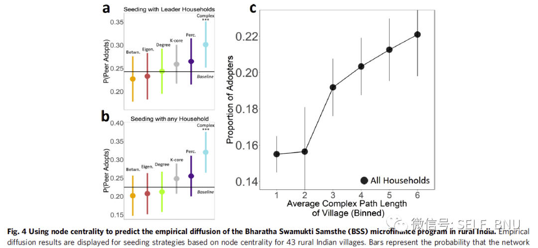 该研究结果在两个方面颠覆了人们以往对于社会扩散的认知。首先,在以往的社会扩散的理论和应用研究中,一个共同的假设是,拥有更多联系的人更具影响力,然而该研究却提出了不同的观点,即认为度中心性(degree centrality,一个节点的中心性由它通过单条线连接其他节点的数量决定)是一种有效的在社会网络中识别最有影响力的个人的方法,而不必考虑背景。其次,社会网络组织研究中的一个共同假设是,信息经纪人(information brokers,即参与多个不同的网络社区的人)具有巨大的影响力,因为他们是社区之间传染流的把关人。这一假设导致中间性中心性成为组织理论中成为被使用得最广泛的网络影响力衡量指标之一。相比之下,本研究结果表明,具有低度中心性和低介数中心性(节点的中心性由通过它的最短简单路径的数量决定)的网络位置可能是人群中最具影响力的位置。而具有最高中心性和中间性中心性的个体通常占据无效的网络位置。
