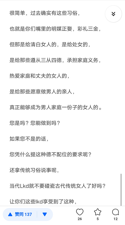 在他们看来,在古代,彩礼是“从父母手中买断女性使用权”;而放在男女平等的现代,就是赤裸裸的敲诈。