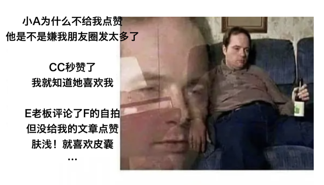 点赞多的真相竟是高公共自我意识?!相关研究发现,高公共自我意识的个体更新朋友圈信息的频率会更加频繁,发布的内容也会收获更多点赞,更容易感知到较高的社会支持[6]。 公共自我意识(Pubilc self-consciousness)指注意自己的外表和行为,关注别人对自己的评价[7]。记得上公开课的自己吗,如果后排都是听课老师,那可是要装出认真听课的样子。 家人们不妨想想自己的朋友圈里有没有这样的好友:微信通讯录人数飙升500+,朋友圈一天十更,活跃在各大线上平台……这些可能就是有着高公共自我意识的人。 高公共自我意识的人对社会交往的期待很高,会有策略性地展示自我,往往会更新较积极的朋友圈内容。 (这就是收获高点赞的真相吗?悟了!) 同时,他们也会更加注重他人的看法,对点赞的数量和评论格外关注,并期待好友的积极评价[7]。