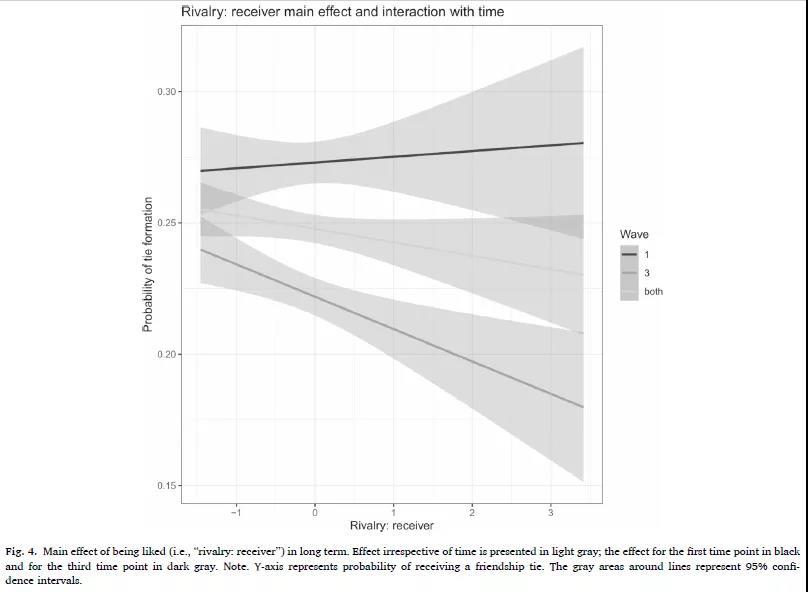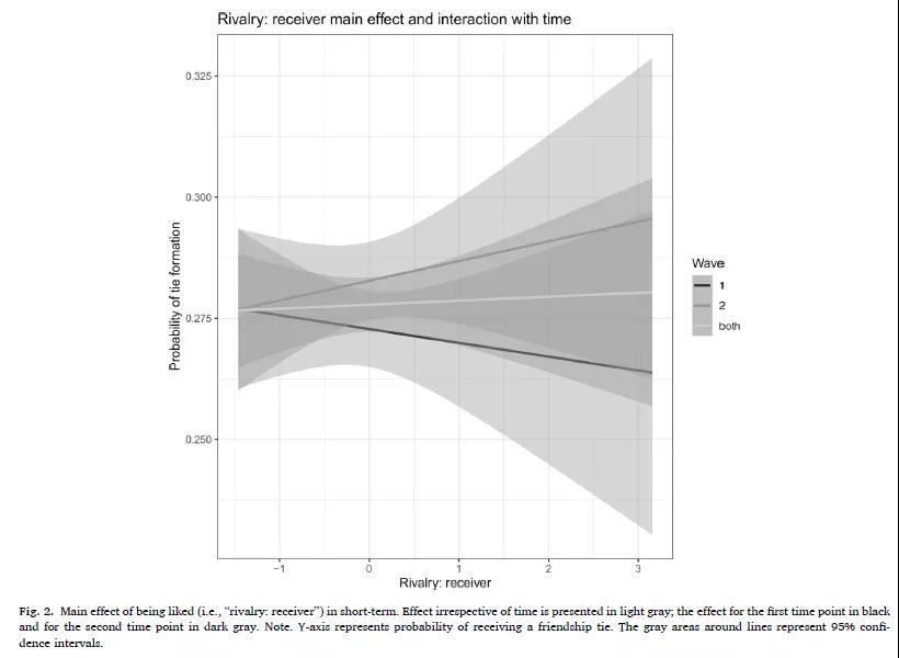 图2 在初始时间点1和三个月后时间点2 自恋竞争对受欢迎的影响