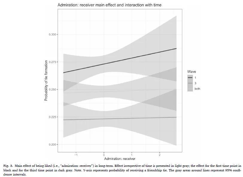 图3 在初始时间点1和一年后时间点3 自恋钦佩对受欢迎的影响