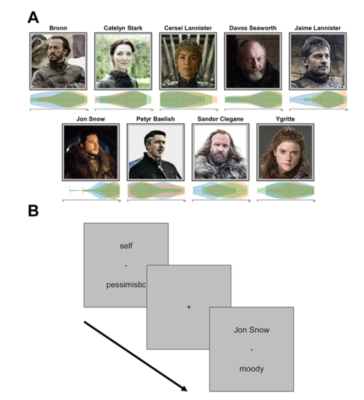 02“入坑”时大脑在发生什么?一项很有趣的实验运用fMRI对19名自称是《权利的游戏》(Game of Thrones)的剧粉进行了大脑腹内侧前额叶皮层(ventral medial prefrontal cortex, vmPFC)部位的扫描。 实验过程中,研究者会展示一些名字,每个名字会对应一个特征,比如孤独、悲伤、可靠或者聪明。这些名字既包括参与者自己的,也包括其真实好友的,还包括权游中的角色名字。