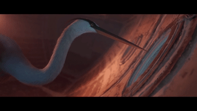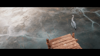 太阳下山了 只剩下一点点红色的余晖 寒冷的冬夜即将来临 苍鹭必须抓紧找到吃的 此时 远处冰面上竟然出现一艘废弃的沉船