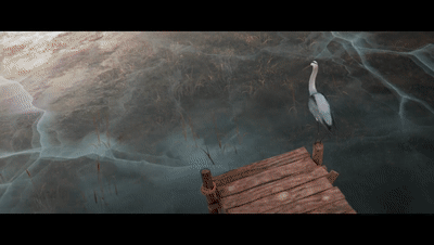 天寒地冻 饥寒交迫 苍鹭看着冰冻的湖面 又抬头看看狂风肆虐 长叹一声