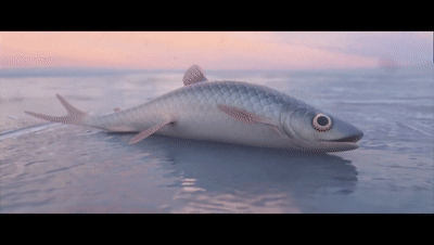 鱼在冰面上停留片刻 便开始跳跃起来