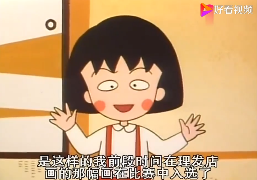 小丸子高兴起来总是手舞足蹈,连忙和家人和好朋友分享。 一次小丸子的绘画作品在比赛里拿了奖,她迫不及待地将好消息带到家里,甚至还专门向绘画中的模特——一位理发店叔叔去报喜。