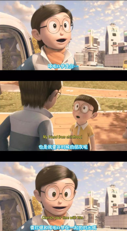 他拥有超能力,能解决大雄的一切困扰,满足大雄所有的奇思妙想。他给予了大雄无条件的积极关注。可以说,他存在的目的,就是为了照顾大雄。 所以,看哆啦 A 梦,不仅满足了我们年幼时各种新奇的脑洞,也满足了我们童年时对陪伴者的一切期待。 小时候大叔以为,哆啦 A 梦会永远陪在大雄身边。长大之后才发现,事实原来并不是这样。 长大后的大雄,身边不再有哆啦 A 梦。