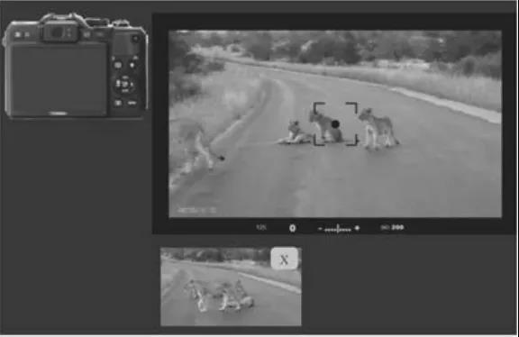 中干扰度拍照组的参与者需要用鼠标将一个笨重的模拟数码相机移动到想要拍摄的画面上后才能拍照: