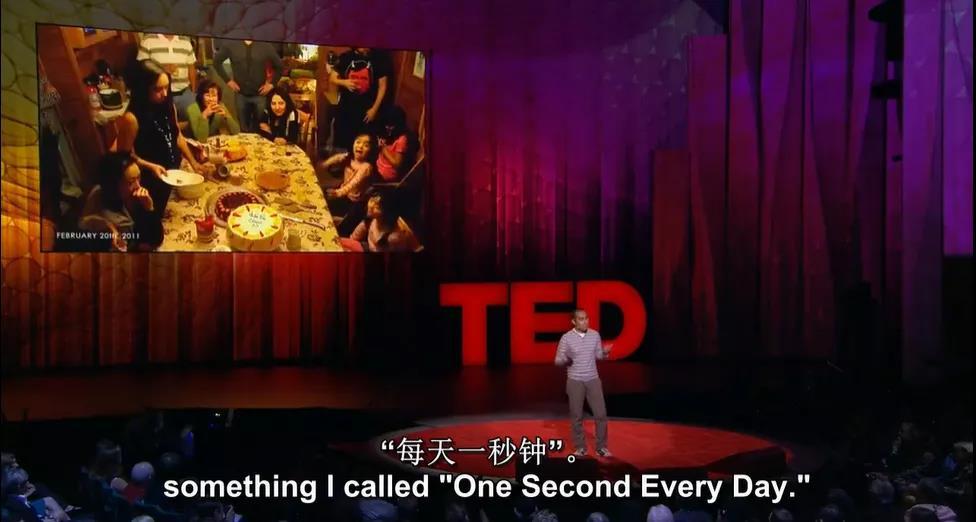 他把这些拍摄好的生活片段拼接为连续的视频,这样到他80岁时就可以有一段把人生浓缩为5个小时的视频。他说,这个项目让他每天醒来都生龙活虎,想着要去做更多有趣的事情。 看完这个演讲后,学堂君也很心动地开始尝试每天拍1秒钟的视频,后来苦恼于每天想拍的内容太多,担心自己沉迷视频剪辑荒废学业(偷懒的好借口),就放弃了这个野心勃勃的计划,但随手拍照记录生活却成为一种习惯被保留了下来。